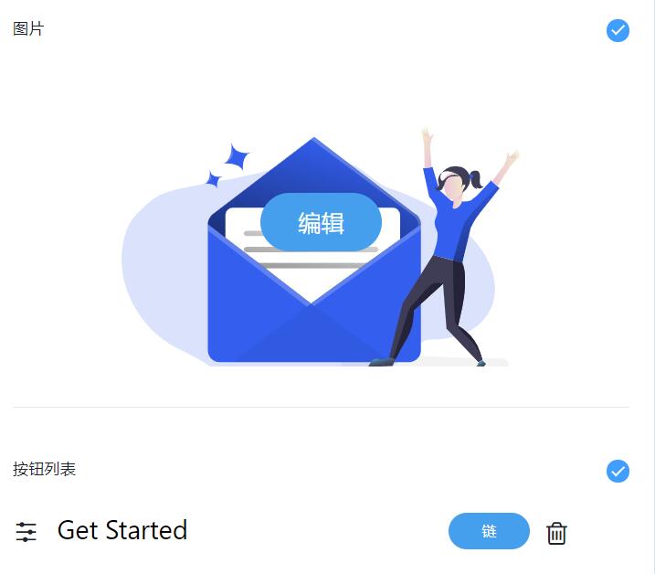 变化3: 如果希望每个内容下面都可以有按钮,则将每个图片下的隐藏按钮点击勾选。