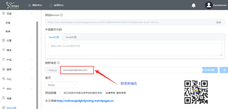 5. 在映射域名里修改域名