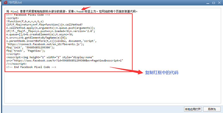 3. 复制需要安装的代码,并确认代码所需安装的位置,通常有两个位置:head位置和body位置。